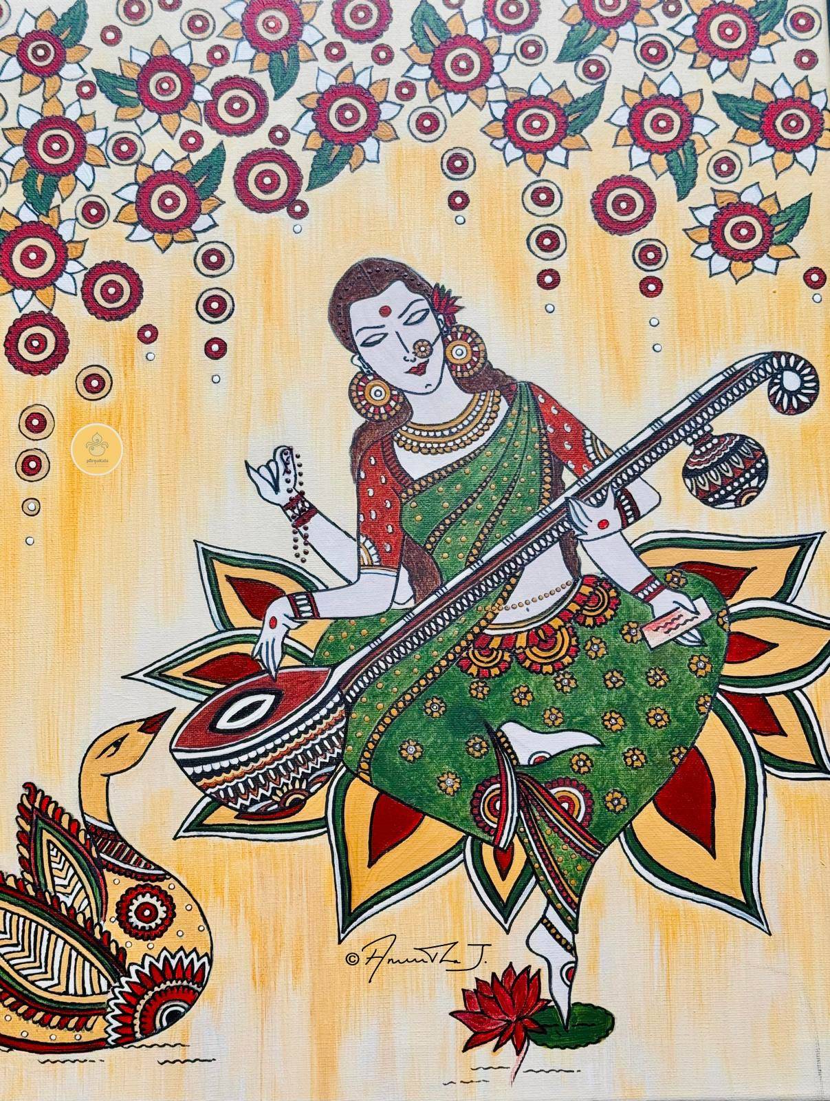 Create and take home a beautiful painting of Annapakshi (8 × 10-inch, acrylic on canvas).